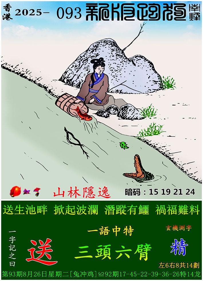 093期新版跑狗一字記之曰:【送】 玄機測字:《精》 一語中特:三頭六臂