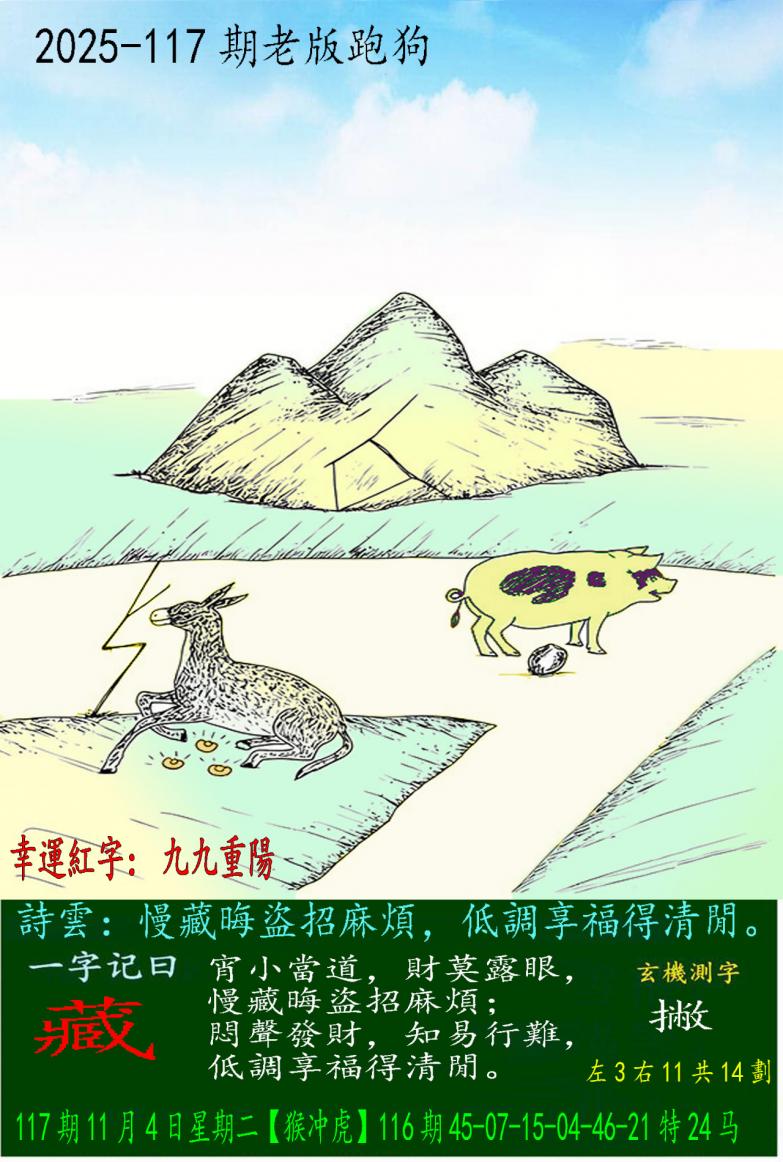 117期老版跑狗一字記之曰:【藏】 詩雲:慢藏晦盜招麻煩,低調享福得清閒。