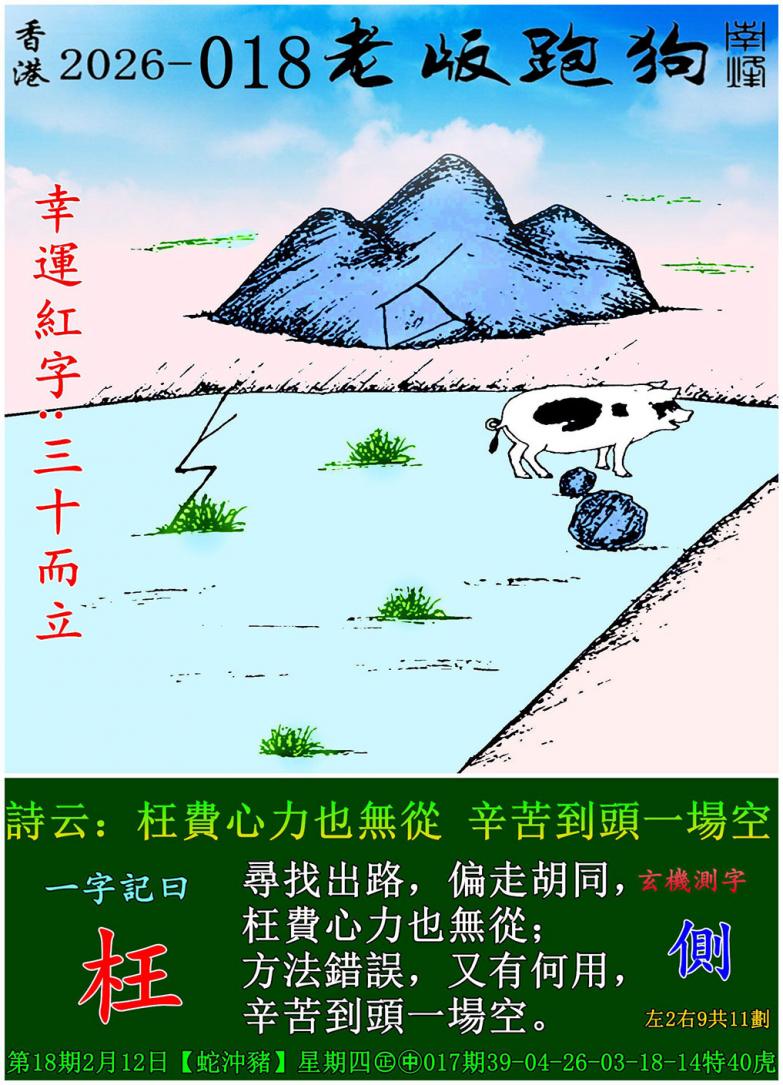 018期老版跑狗一字記之曰:【枉】 詩雲:枉費心力也無從,辛苦到頭一場空。