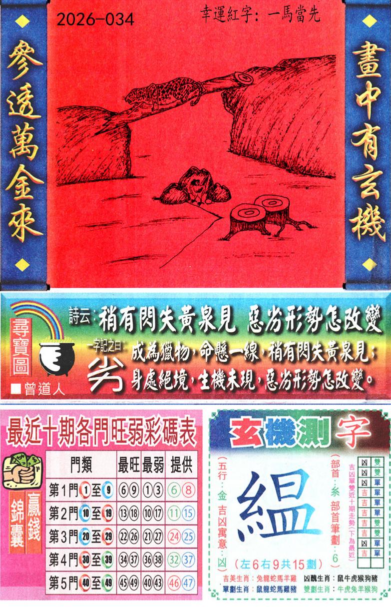 034期老版跑狗一字記之曰:【劣】 詩雲:稍有閃失黃泉見,惡劣形勢怎改變