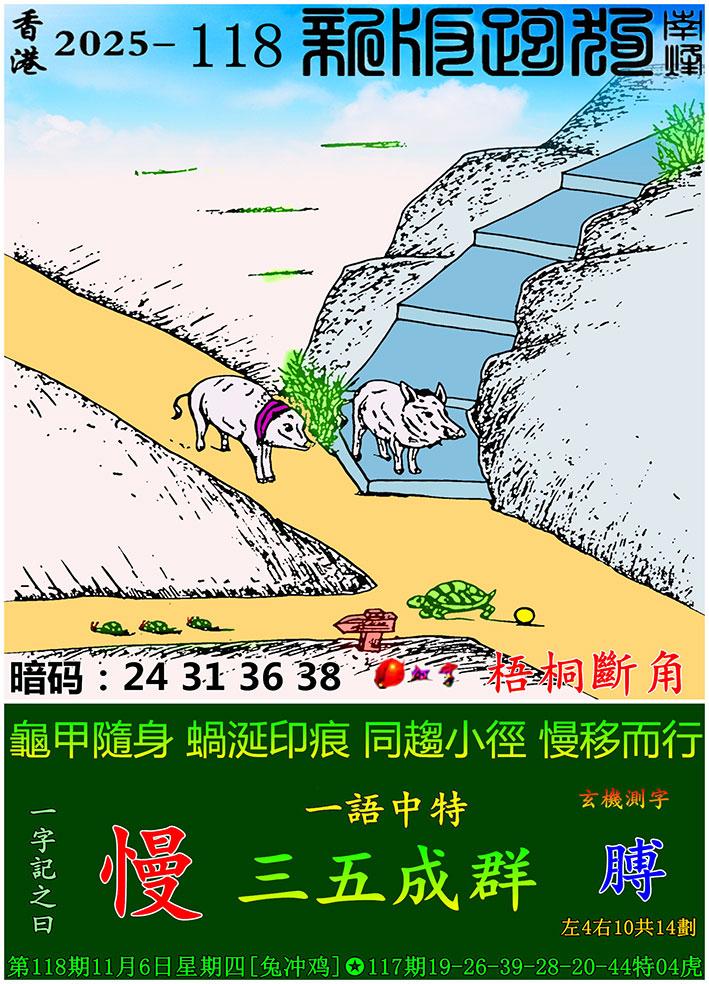 118期新版跑狗一字記之曰:【慢】 玄機測字:《膊》 一語中特:三五成群