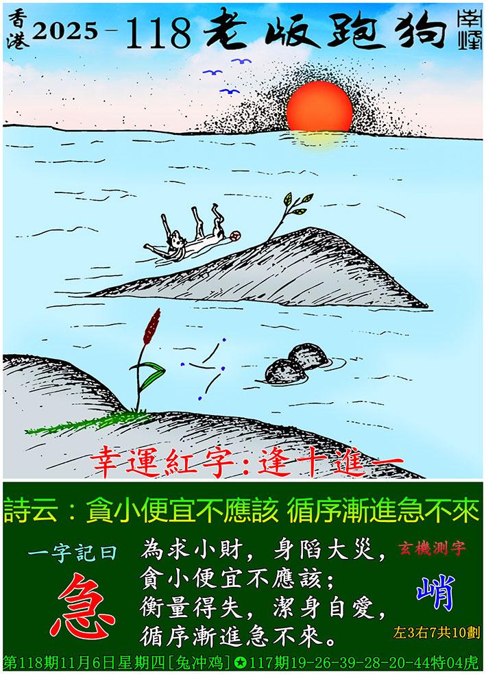 118期老版跑狗一字記之曰:【急】 詩雲:貪小便宜不應該,循序漸進急不來。