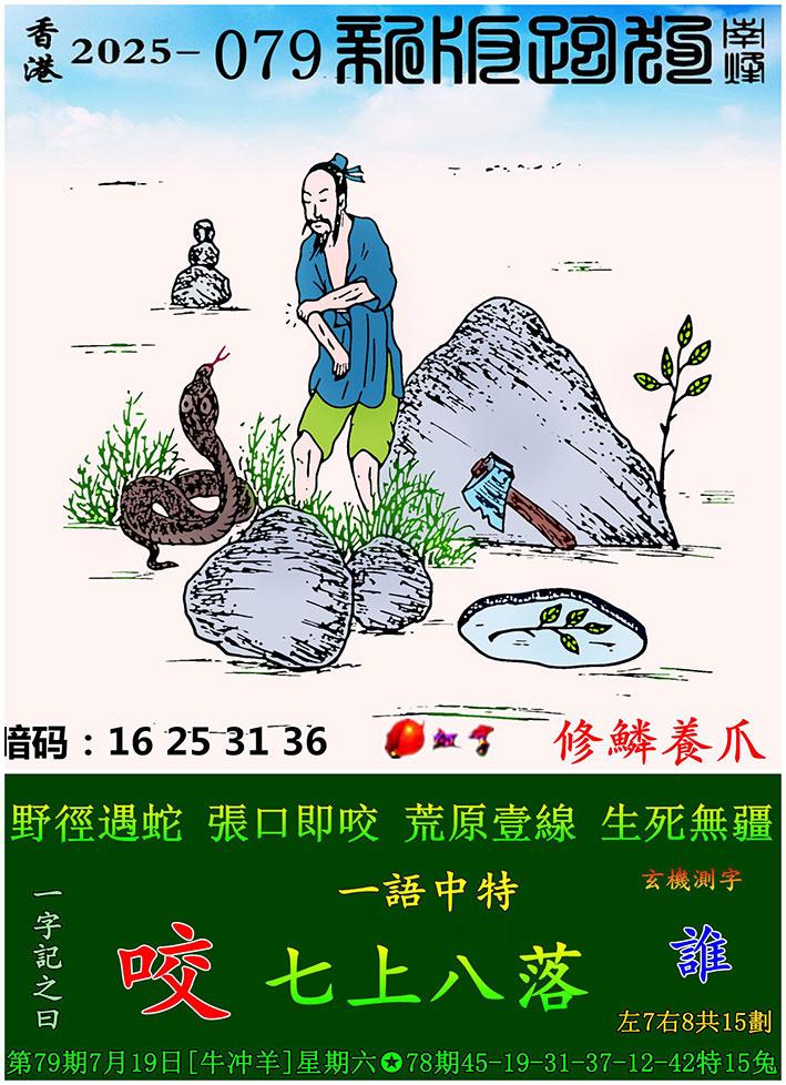 079期新版跑狗一字記之曰:【咬】 玄機測字:《誰》 一語中特:七上八落