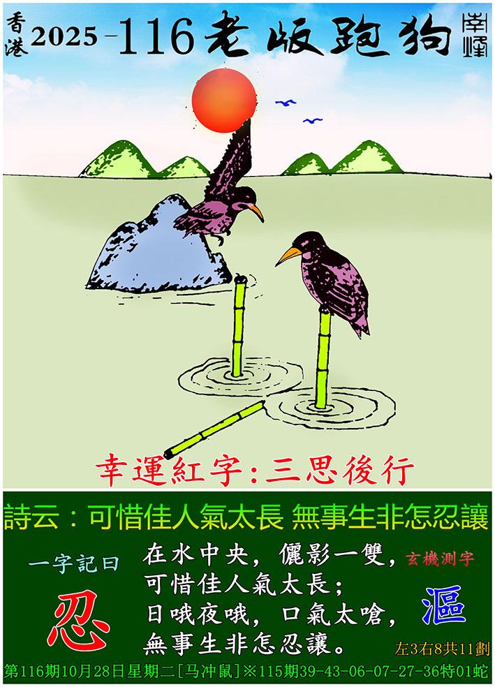 116期老版跑狗一字記之曰:【忍】 詩雲:可惜佳人氣太長,無事生非怎忍讓。