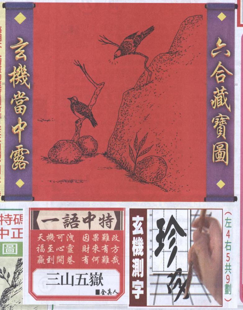 035期新版跑狗一字記之曰:【鳴】 玄機測字:《珍》 一語中特:三山五嶽